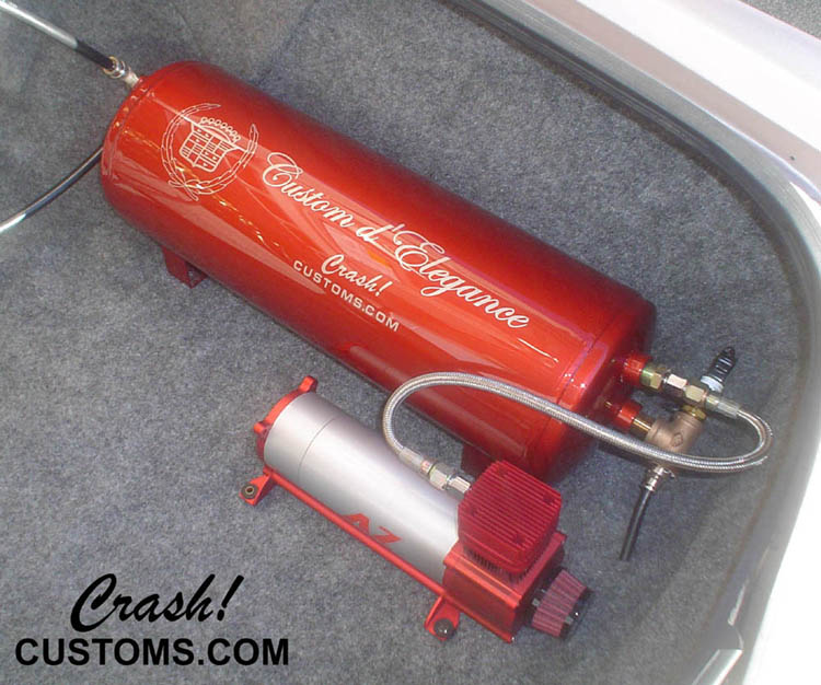 For a modern twist on a low profile, Air Suspension is the way to go. We can install any configuration from a mild up & down job to a wild set-up which allows you to drop and raise, front to back, side to side, see-saw and even roll on 3 wheels! You will get a clean quality install whether you have the system hidden or show it off with custom painted tanks and switch boxes to compliment your ride. Below are a few examples of some trick set-ups; contact us for a custom quote and you'll be rolllin' low and slow in no time.